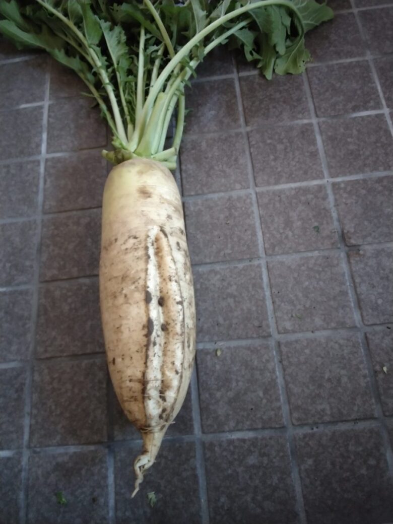 泥だらけで野菜を収穫する幸せ。